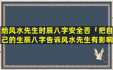 提供时辰八字给风水先生通常是安全 🐧 的,但需要采取一些预防措施以保护您的隐私: