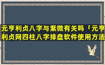 元亨利贞网四柱八字排盘软件使用 🐵 方法