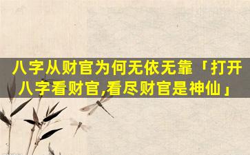 从八 🐬 字命理的 🐬 角度来看八字从,“财官为何无依无靠”是指: