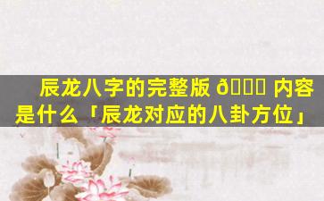 辰龙八字完 🌾 整版 🐈 内容
