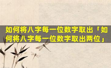 八字每一位 🐘 数字仅有一个数字,无法取出 🐝 两位数字 🐅 。