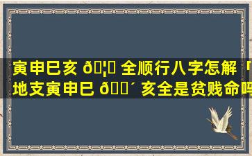 否,地支寅申 🌸 巳亥不一定 🐘 是 🦉 贫贱命。