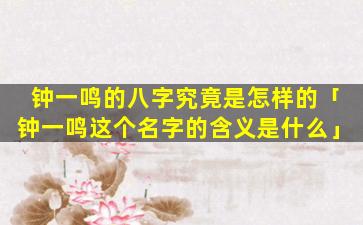 因 🌵 此,钟一鸣这 🌸 个名字可以理解 🐯 为:
