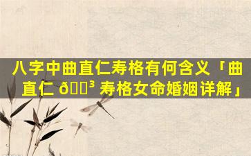 含义:曲直 🦄 仁寿格是一种大吉格 🐝 局,主命主性格正直、行,为 🌸 端正有仁德之心。