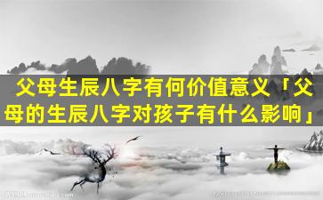 父母生辰八字 🕸 的价 🐝 值和意义