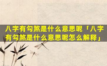 总 🐬 体而言,勾陈在四柱中具有化煞、保,平、安的作用而煞则主克制带来灾祸。二,者的。组合会影响命主的运 🐟 势好坏应根据具体情况进行 ☘ 分析和化解