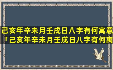 己亥年辛未月 🪴 壬戌日八字的寓 💐 意: