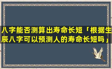 八字 🦁 理论中没有 🌳 明确的说法可以精准测算出一个 🐕 人的寿命长短。