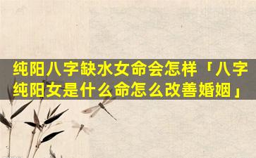 纯 🐋 阳八字缺水女命 🐎 的影响