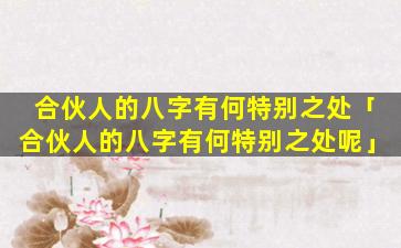 合伙人八字的 🐯 特别之处可能包括: