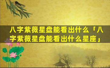 八 🐞 字紫薇星盘 🐎 不能看出星座 🍀 。