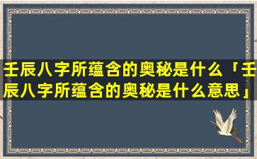 壬辰八字所蕴含的奥秘指的是壬辰八字中所蕴含的特殊信息和规律,这些信息和规律可 🌹 以用来推算一个人 🕷 的命运。
