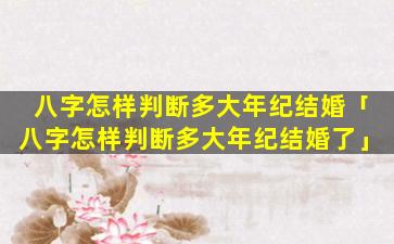 八字 🌷 看结 🌷 婚 🦢 年龄