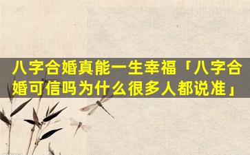 八 🌹 字合 🦊 婚 🌿 的準確性