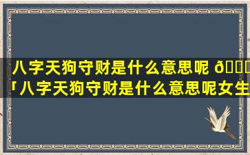 "八"字 🐟 天狗守财 🦆 在 🐴 女命八字中指的是: