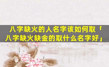 八字缺火取名 🌻 字 🦈 的方法 🍀