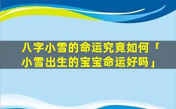 根据中国传统文化中的命理学观点,小,雪出生的宝宝命运好坏取决于 🐞 多种因素包括出生日期、时、辰五行属性以及与父母的八字合不合等。具体来说: