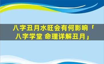 八字中丑 🌼 月为水旺之月 🍀 水旺,的影响包 🕷 括:
