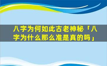 八字为何如 🐘 此古老神秘的 🐕 原因