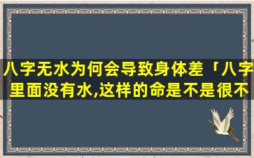 八字无水会导致身体各方面的機能下降,抵,抗力降低更容易出现各种健 🐈 康问题。