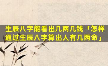 传统的生辰八字算命中,并没有“几 🌼 两命 🐎 的”说法。