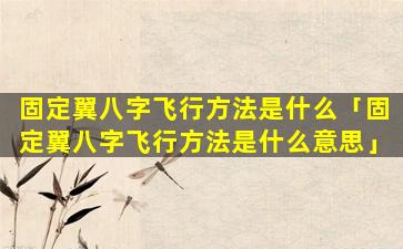 固定翼 🐠 八 🌼 字飞行方 🐒 法