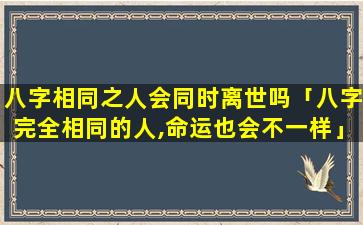 八 🐠 字相同的人 🐝 出生时间、地点等因素可能不同因,此,后天的遭遇和命运也可能有所不同去世时间也不一定会相同 🪴 。