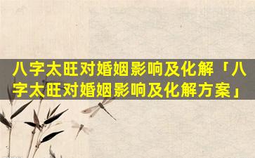 化解方案化解 🕊 八字太旺对婚姻的影响,可以采取以下 🦈 措施: