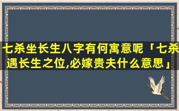 财 🐯 运亨通:长生主财,七,杀坐 🪴 长生的人财运亨通钱财不断。