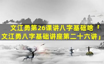 文江勇第 💐 26课讲解的八字 🕷 基础内容包 🐠 括: