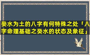 癸水 🌼 为土的八字特殊 🌸 之 🐡 处: