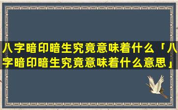 八字暗印暗生 🐶 ,往往有以下含 🪴 义: