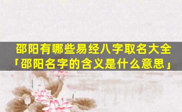 邵阳没有专门针对易经八字 🐳 取名的大全。但你可以参考以下资源来 🌿 获取相关信息: