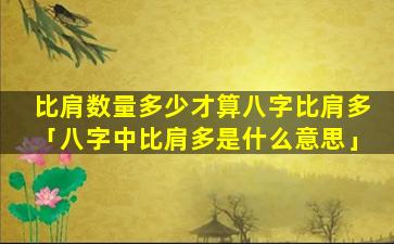 八字中,比,肩的 💐 數量多寡通常以以下標準衡量: