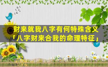 来说,“财来就 🌾 我”八字的特特殊含义在 🪴 于 🦆 :
