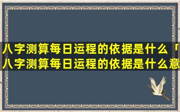 八字测算每日运程的 🕸 依据主 🐡 要有 🌳 以下几个方面: