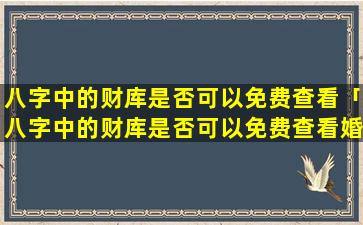 无法通 🦟 过八字 🐋 中的财库 🐟 免费查看婚姻。