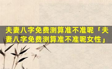 夫 🐕 妻八 💐 字免 🦆 费测算的准确性: