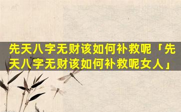 根据命理学,先天八字无财是指出生年月日时柱中没有财星(正财 🐕 或偏财)。这,可。能导致财富运势不佳收入低或不稳定以下是一 🐞 些补救方 🦟 法: