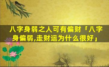 如果八字身弱,但,格 🐯 ,局好命局中有强有力的贵人扶身则此身弱之人也能发偏财。