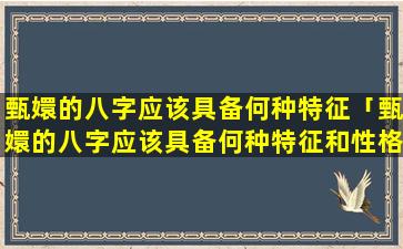 综 🐛 合来看 🌻 ,甄嬛的八字具备 🐧 以下特点: