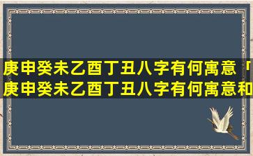 整体寓意庚申癸未乙酉丁丑八字五行金水土木火齐 🌼 全,为一均衡之命。