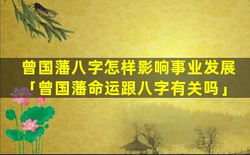 曾 🕸 国藩的命运是否与八字相关是一个很难确定的问题。