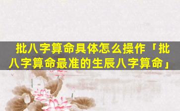 批八字算命 🕸 的操 🦈 作步骤 🐋 :