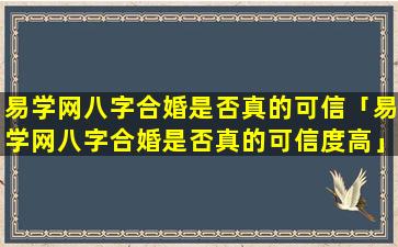 易学网八字合 🐡 婚的可信 🐛 度因人而异,没有明确的 🦟 结论。
