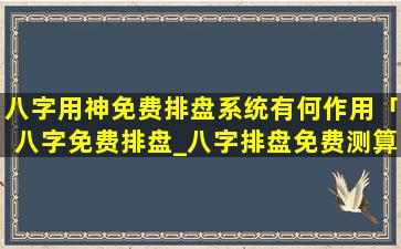 八 🦆 字用神免费排盘系统的作 🐶 用