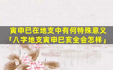 寅申巳在地支中被称为“三 🕸 合局”,具有以下特殊意 🪴 义: