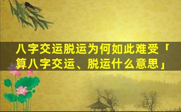 八字交运是 🦊 指当大运流年与日柱天干地支发生 🐞 关系时,会对原命 🕊 局产生影响。脱运是指大运流年与日柱天干地支,的关系发生。改变导致运势逆转或衰落