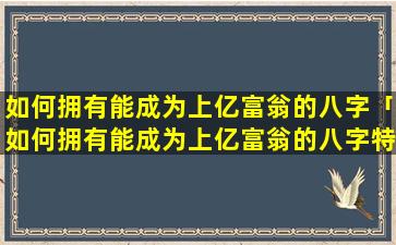 八字 🦢 具备富翁特征的八字特征: