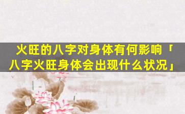 火旺八字 🌼 对身 🐺 体的影响